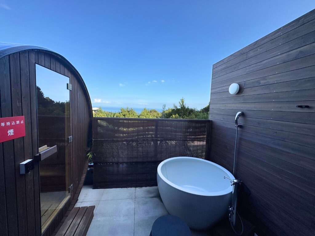 テラスに専用のバレルサウナ(2名定員)とジャグジー付きの露天風呂を設置したお部屋です。3室あり、上層階は眺望がありますが、下層の「T01」(ティーゼロイチ)など一部は眺望がないタイプもあります。お部屋の露天風呂は温泉ではありませんが、プライベートな空間でゆっくりと過ごせます。