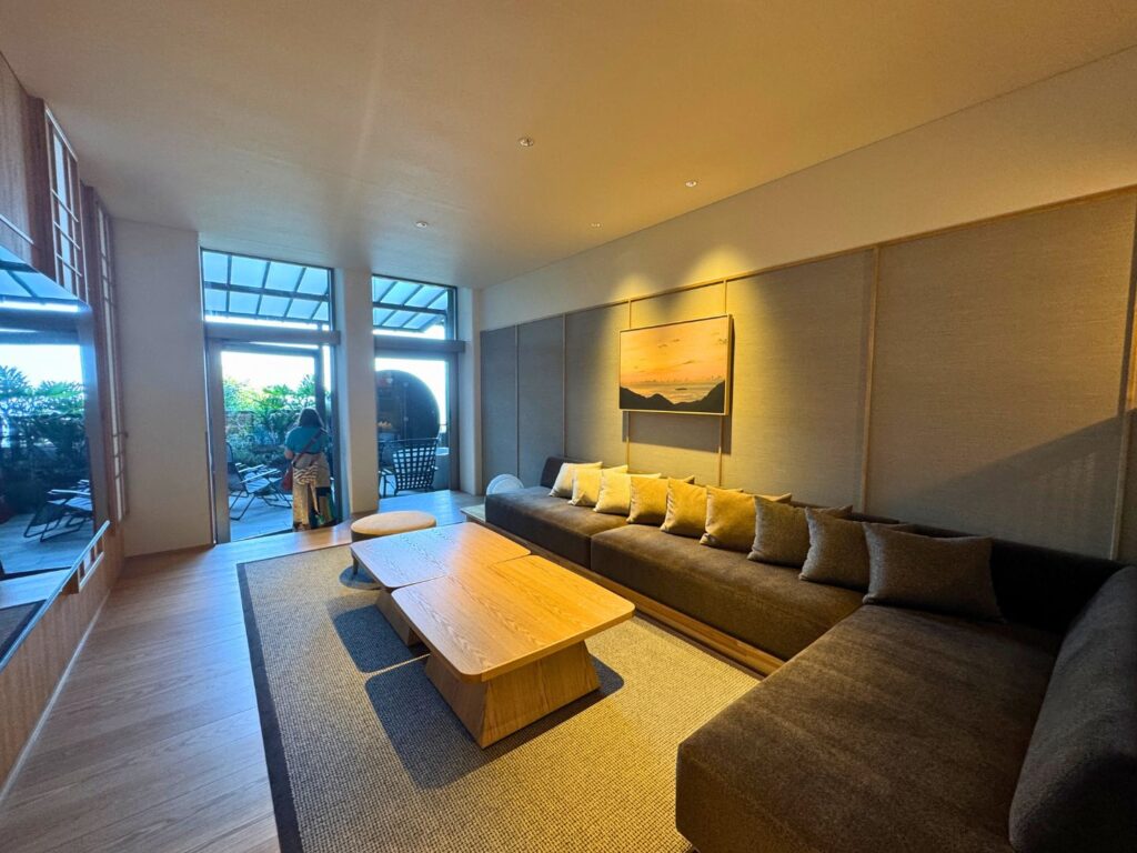 120インチの3in1プロジェクターも完備されており、大画面での映画鑑賞や推し活利用にも対応可能です。オーシャンビューが自慢のお部屋で、贅沢な滞在を楽しめます。