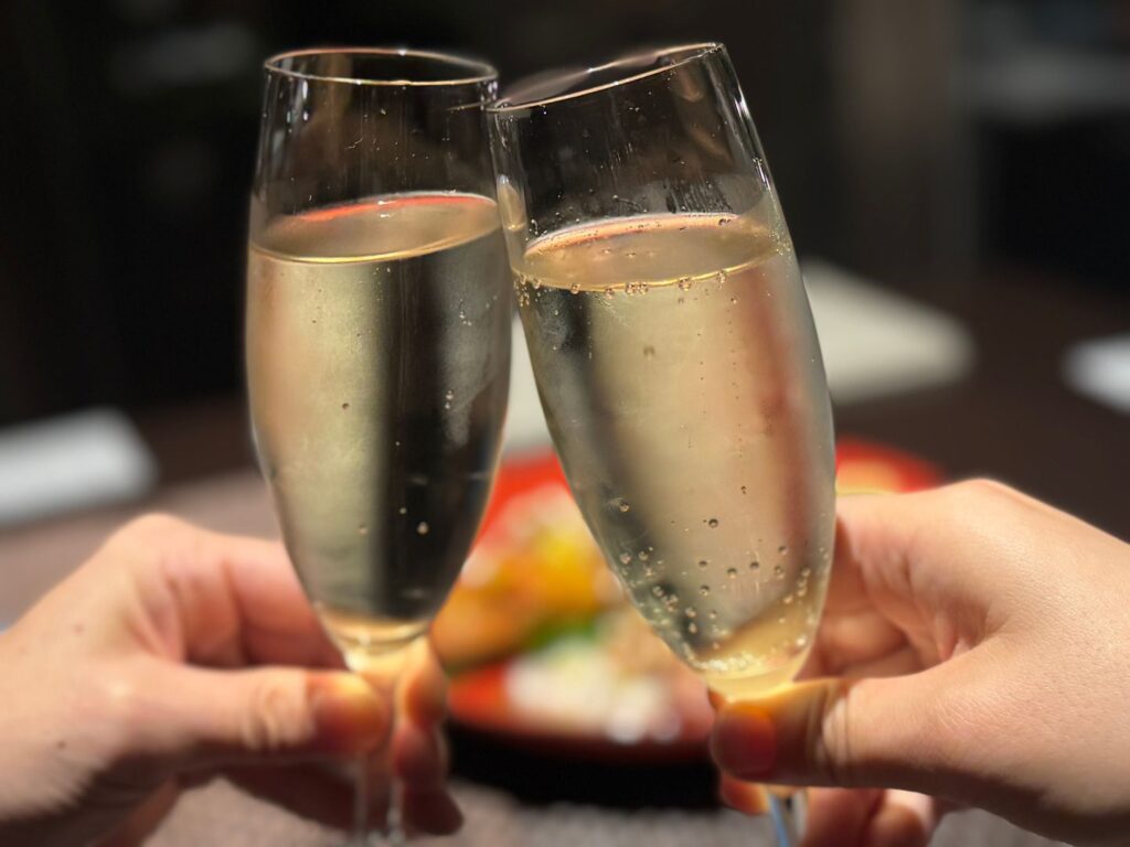 また、お食事のコースには飲み放題も含まれています。スパークリングワインやビール、日本酒、梅酒など、種類豊富なドリンクを楽しめます。静岡の地酒も揃っており、お料理との相性も抜群でしたよ。