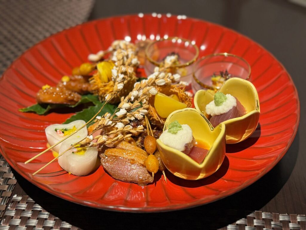 試泊当日の夜に用意されていたのは、なんと「熱海最上級コース」! 一品一品丁寧に説明していただきながら、ゆっくりと味わうことができました。