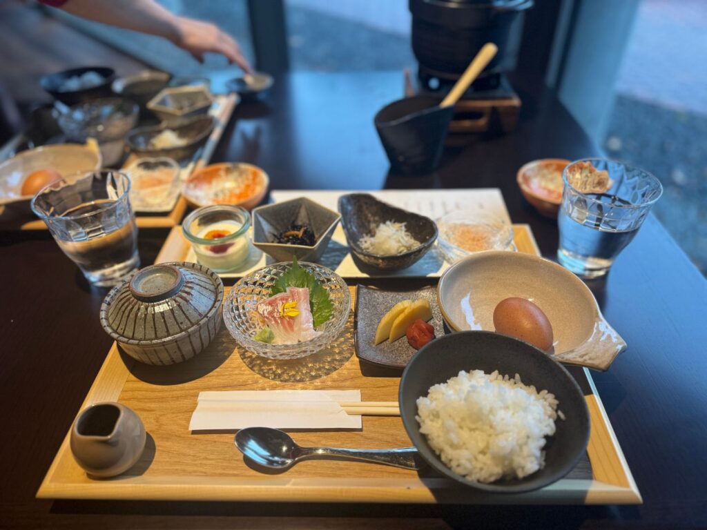 さらに同じ会場で提供された朝食も魅力的! 地元の食材を生かした和朝食には、自家製スムージーや土鍋ご飯、静岡県産地養卵と特製出汁醤油、真鯛の刺身など、健康にも良さそうなラインナップ。優しく上質な味わいのおかずに加え、ご飯がおいしすぎて、ついついおかわりしてしまうほどでした。
